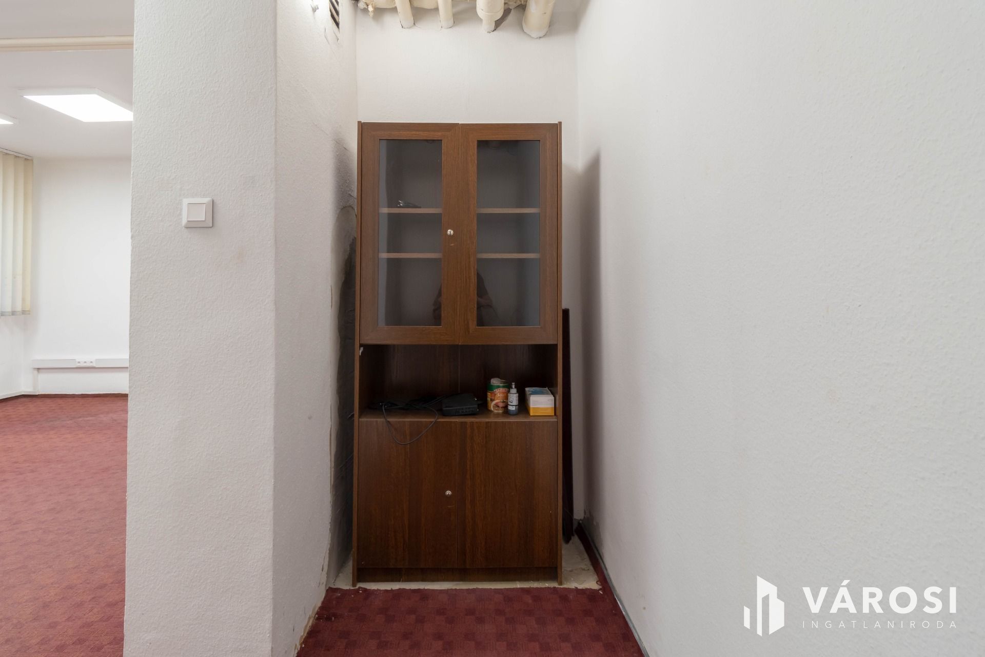 Az iroda egyébként bútorozatlan.