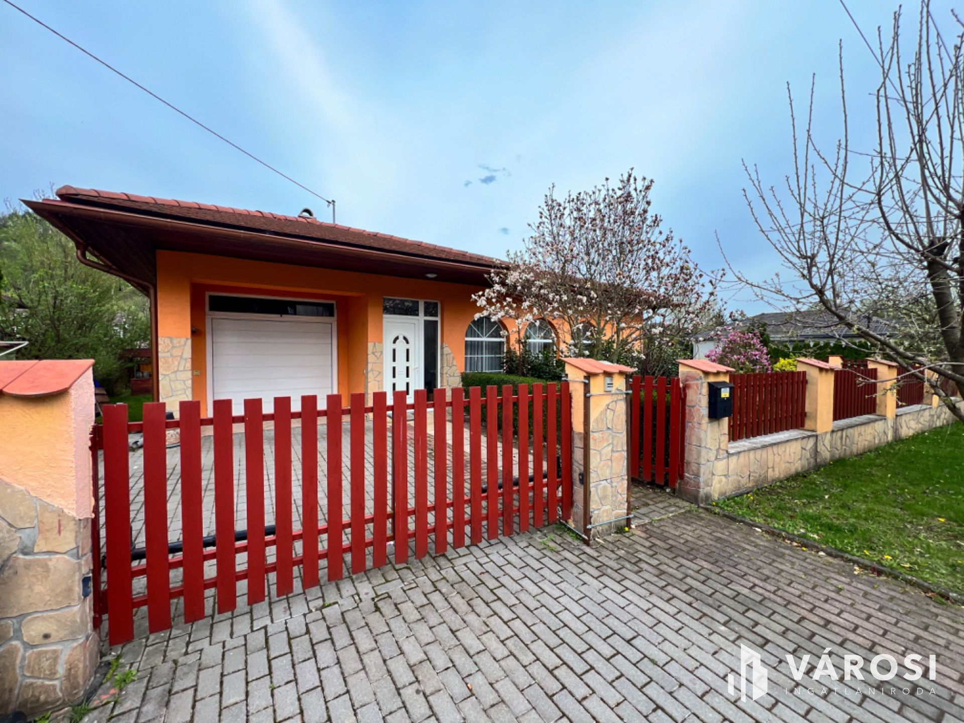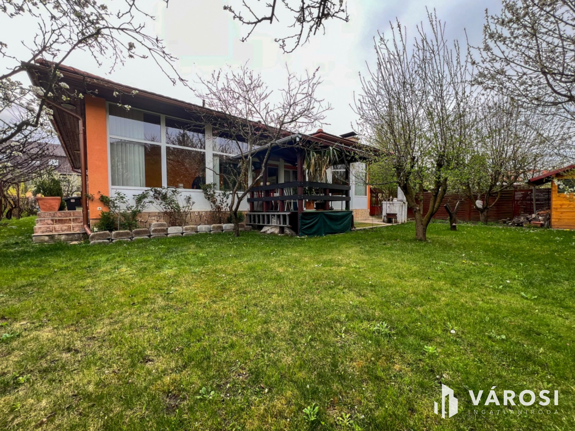 Az ingatlanhoz tartozó telek cca. 300 nm nagyságú, körbekerített, udvari gépkocsi beálló, nyitott terasz, kerti tároló, kemence, fúrt kút, tuják, gyümölcsfák találhatók.