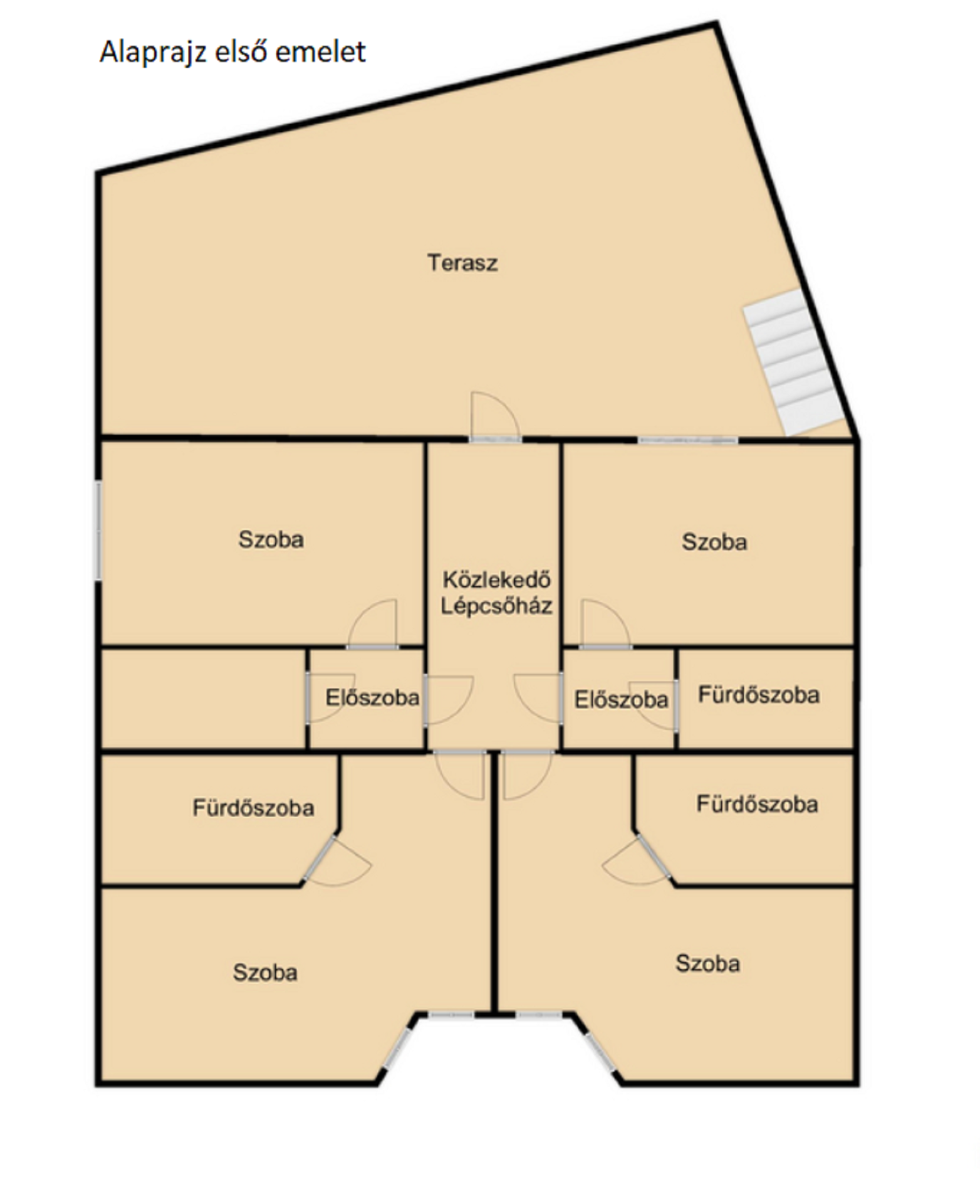 összesen 100 m2 -es, hatalmas, erkélyes családi ház található, ami akár ugyanúgy hotelként is funkciónálhat.