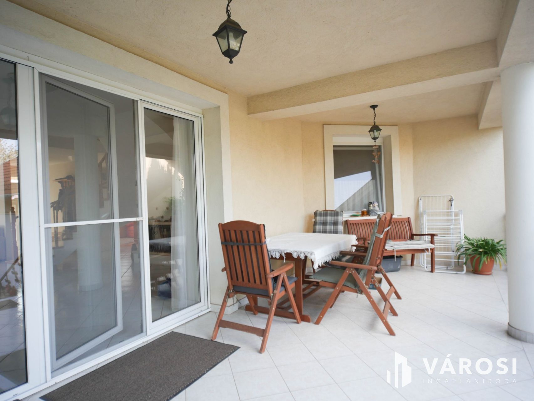 Az ingatlan megjelenése rendezett és igényes már az érkezés pillanatában: falazott alapokon álló kovácsoltvas kerítés és motoros tolókapu biztosítja a kényelmes és biztonságos bejutást, míg a zárt udvar teljes intimitást nyújt. A kert gondosan kialakított, füvesített, örökzöldekkel és sövénnyel beültetett, így a privát szféra maximálisan adott.