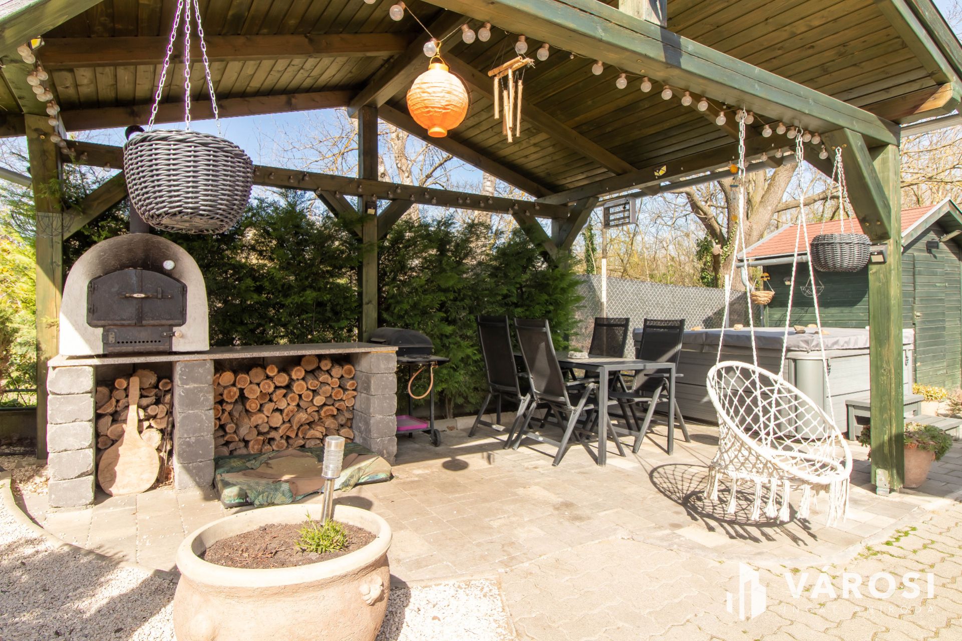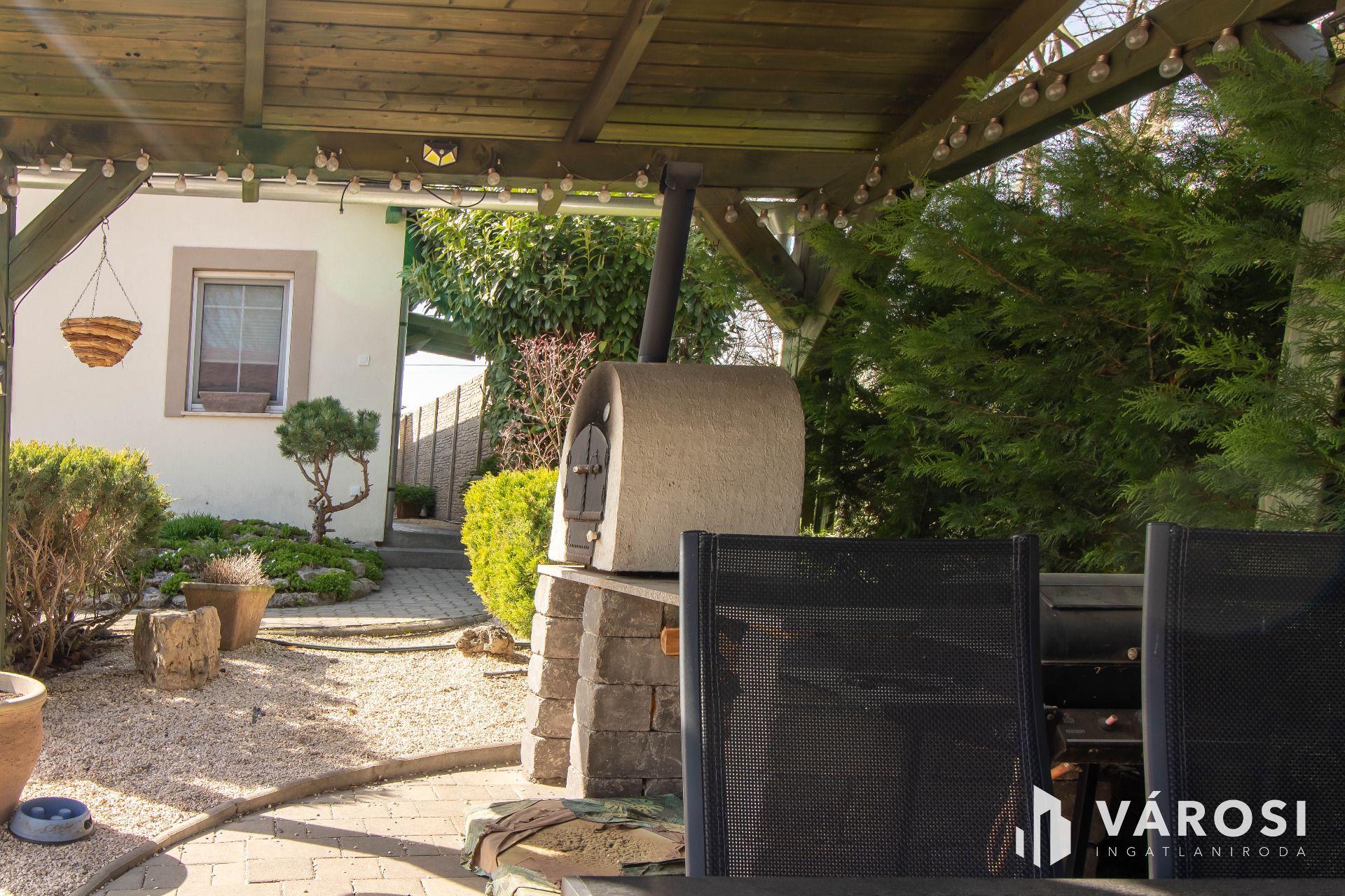 Gondoltak az elektromos autóra is: a töltési lehetőség adott, a bejárat térkövezett, és egy tágas garázs is helyet kapott. A zárt, körbekerített kert valódi édenkert, ahol jakuzzi, veteményes, fiatal gyümölcsfák, fedett terasz és egy hangulatos kemence gondoskodik a tökéletes pihenésről és a baráti összejövetelek élményéről.