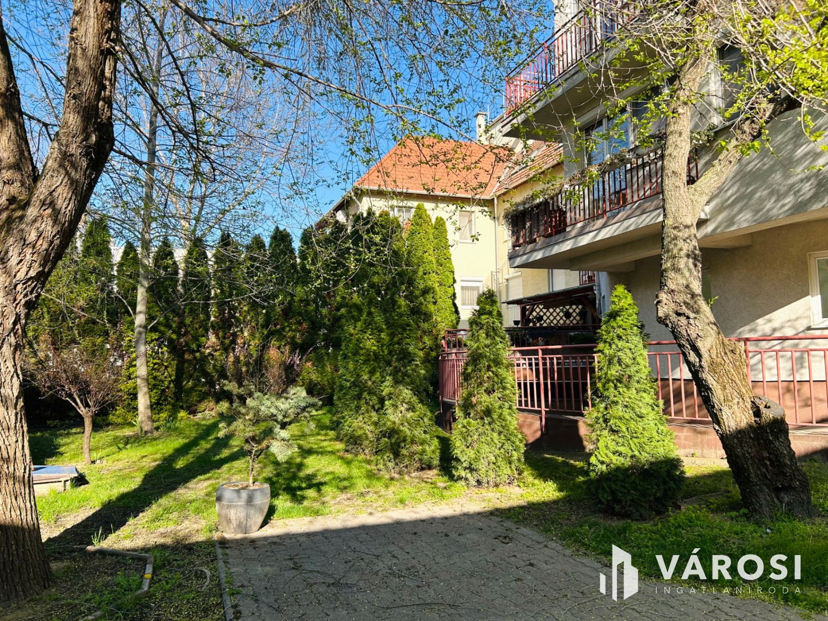 A társasház udvara csendes, szépen gondozott, mely pihenésre, gyerekekkel is tökéletes.