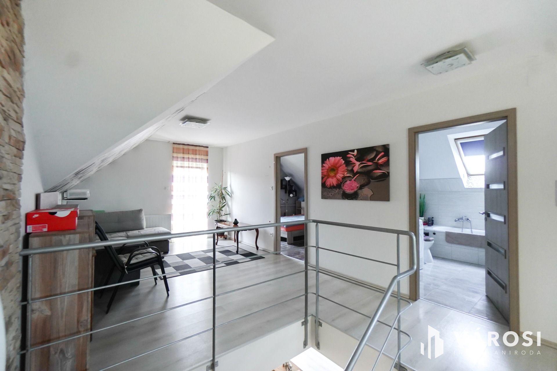 A házhoz tartozik egy kényelmes terasz, ahol élvezheti a csendes utca nyugalmát és a saját kertrész adta lehetőségeket. A biztonságos parkolást az elektromos garázskapu teszi egyszerűvé, és az erkélyről elénk táruló kilátás további élményt nyújt. Az udvaron több járműnek is kényelmesen van hely.