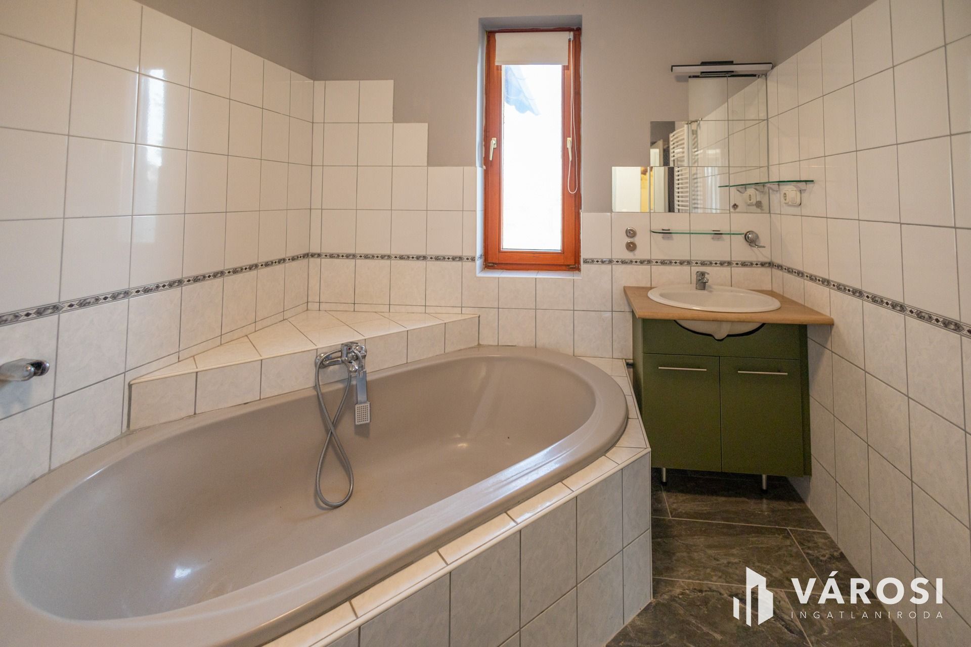 -Szobák és nappali laminált padlóval, egyéb helyiségek járólappal, mindenhol új padlóburkolat