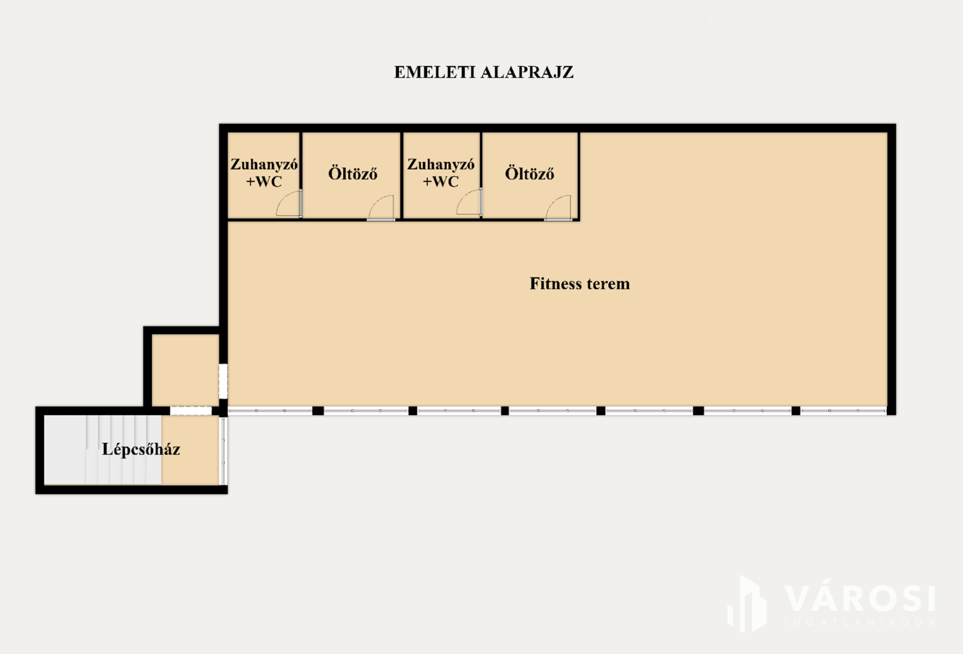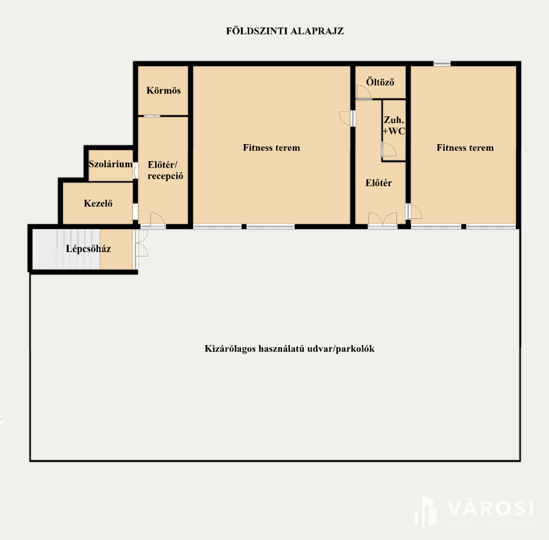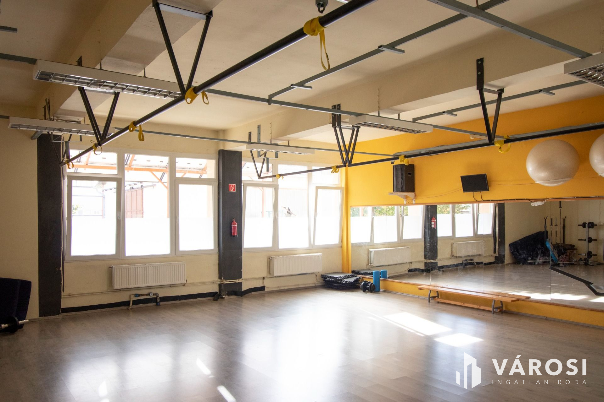 Jelenleg az ingatlan fitness központként üzemel, kialakítása ennek megfelelő. Az épület két szintes, összesen 414 m2-es, földszint+emeletes, lapostetős kialakítású, a két szint fűtése külön gázkazánnal, külön rendszerről, külön gázórával megoldott.