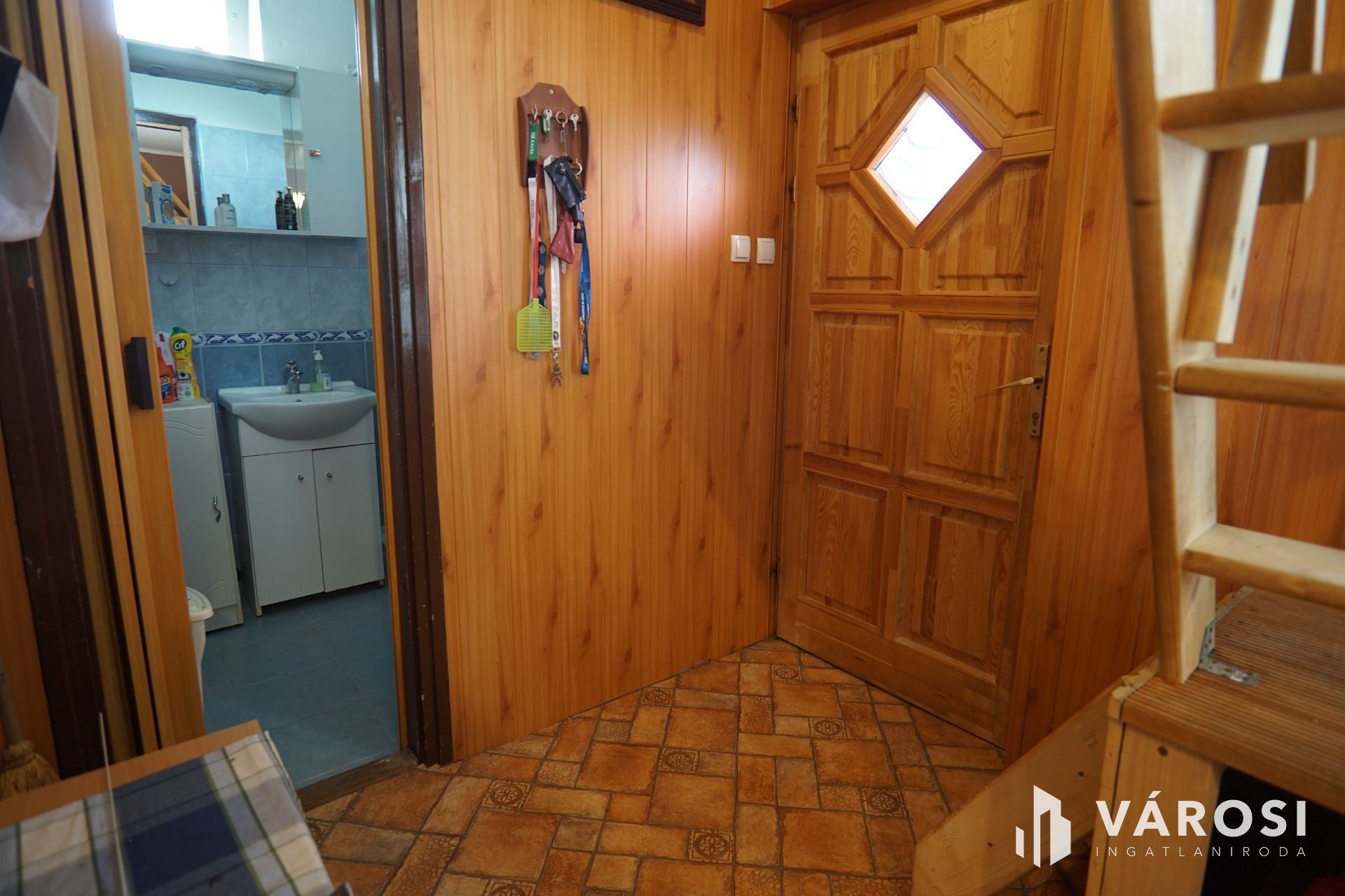 - Fa szerkezetű új lépcső beépítése, (felső szint megközelítése miatt)