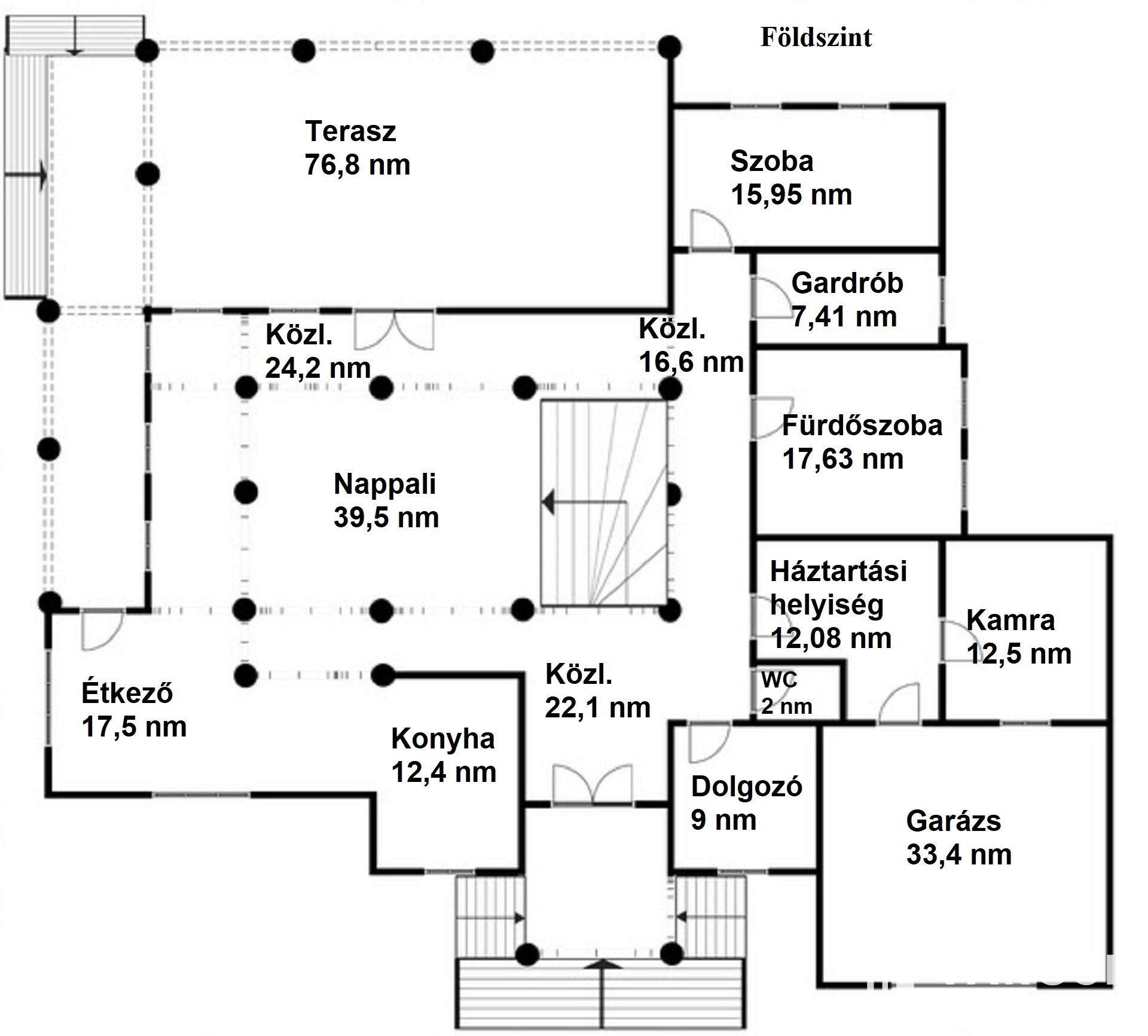 A tulajdonosok a megépítés során minden részletre odafigyeltek és a teljes építkezést felügyelték. A ház 38-as Phorotherm téglából épült, mely nemes vakolattal lett ellátva, a tető pedig Terrán héjazatot kapott. Az ingatlan belső kialakítását nézve a nagy terek dominálnak, hisz minden helyiség a nappaliból belátható. Az ingatlanba belépve egy szép, tágas előszobába érkezünk, mely térből már láthatóvá válik a belső szinteltolás is, ami szintén a mediterrán stílus jelképe. Ezen helyiségből továbbhaladva, tudjuk egy egyedi ívelt lépcsőn megközelíteni a felső szintet, amely 3 külön bejáratú szobából egy külön fürdőből és egy külön mellékhelyiségből áll. Mind 3 szobához teraszkapcsolat tartozik. Az alsó szintre visszatérve, található 2 külön bejáratú szoba, egy nagy légtérrel rendelkező nappali konyha étkező szintén teraszkapcsolatokkal. A ház tájolásának köszönhetően amely kelet-nyugat-dél a nap minden szakában a beltér fényáradatban úszik. A szigetelésről műanyag nyílászárok fa színben gondoskodnak. Az árnyékolást, exotikus gőzölt fa reluxák oldják meg. A meleg nyári napok lehűtésében, több beltéri klíma segédkezik. A hideg téli napok kifűtésében és a meleg víz előállításban, egy nagy teljesítményű cirkó kazán, használati melegvizes tartállyal összekapcsolva, radiátorokon és padlófűtésen keresztül gondoskodik, ezzel szolgálva a bent lakók kényelmét. A nappali hangulatát tovább fokozza, a központilag elhelyezett fa tüzelésű cserépkályha is amelynek melege, a fa ropogása szintén hozzájárul a lakrész téli nyugalmához. A ház belső hangulatát, a teraszra kilépve is érezhetjük, a felfuttatott szőlőnek és a szép igényes kertnek köszönhetően. A terasz adottságai nagyobb családi rendvények, partik megrendezésének tökéletes helyszíne. Gépkocsikkal való parkolás a dupla garázsban megoldott ami kapcsolatban van a belső lakrésszel is. A lakók biztonságára riasztó rendszer vigyáz, mely a nem kívánatos mozgás illetve ajtónyitás esetén azonnal jelez a távfelügyeleti cégnek.