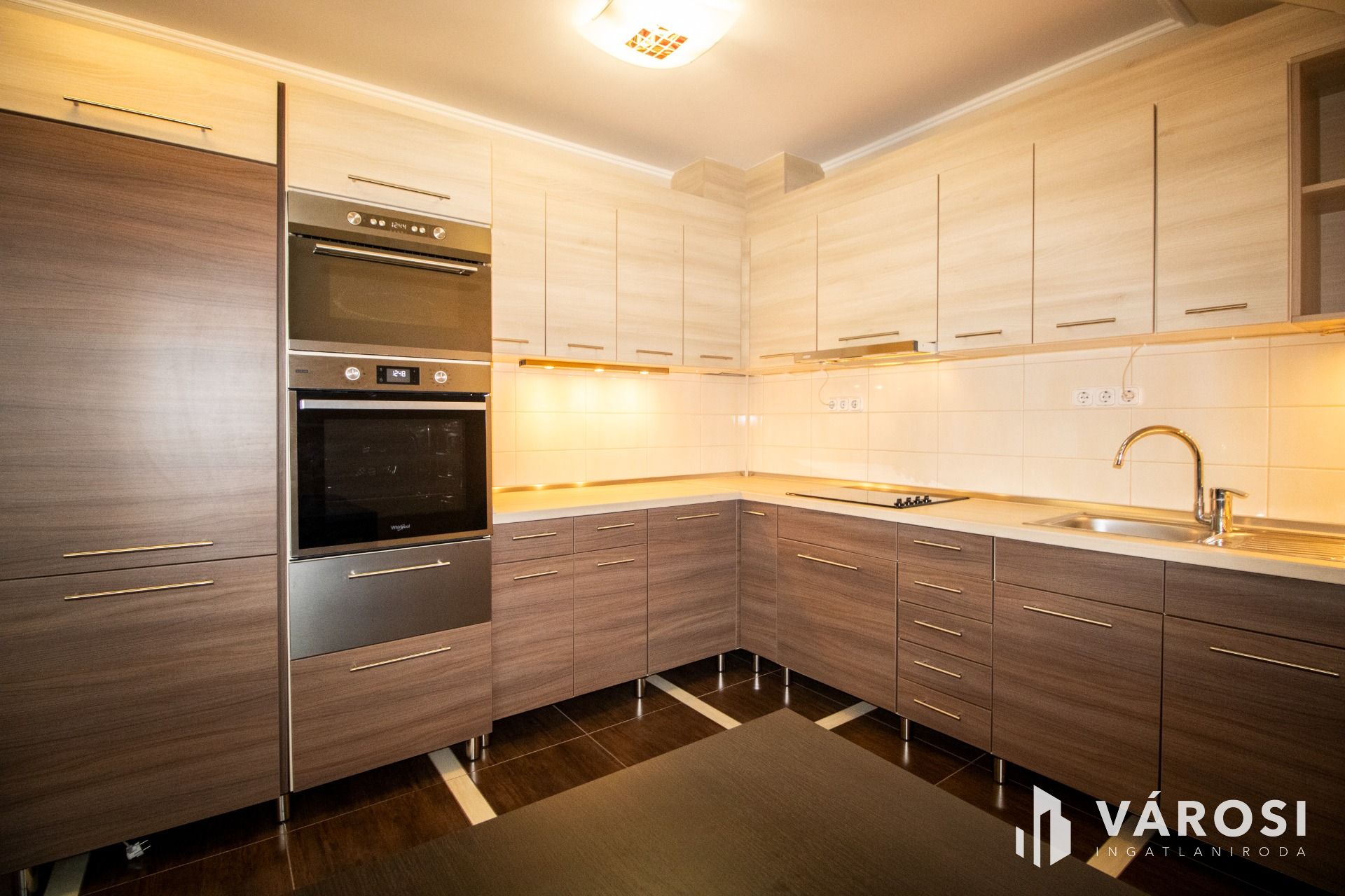 A lakás az első emeleten, a tetőtérben helyezkedik el, ahová kizárólag ehhez az ingatlanhoz tartozó, saját lépcsőházon keresztül juthatunk fel. A belső terek fiatalosak és rendkívül praktikus elrendezésűek: a közlekedőből nyílik a világos nappali és a modern konyha–étkező, amelyhez egy elegáns, kovácsoltvas korlátos erkély kapcsolódik. A két hálószoba jól szeparált, a külön WC és a mindkét irányból megközelíthető fürdőszoba pedig gondosan átgondolt, kényelmes megoldást nyújt a mindennapokban.