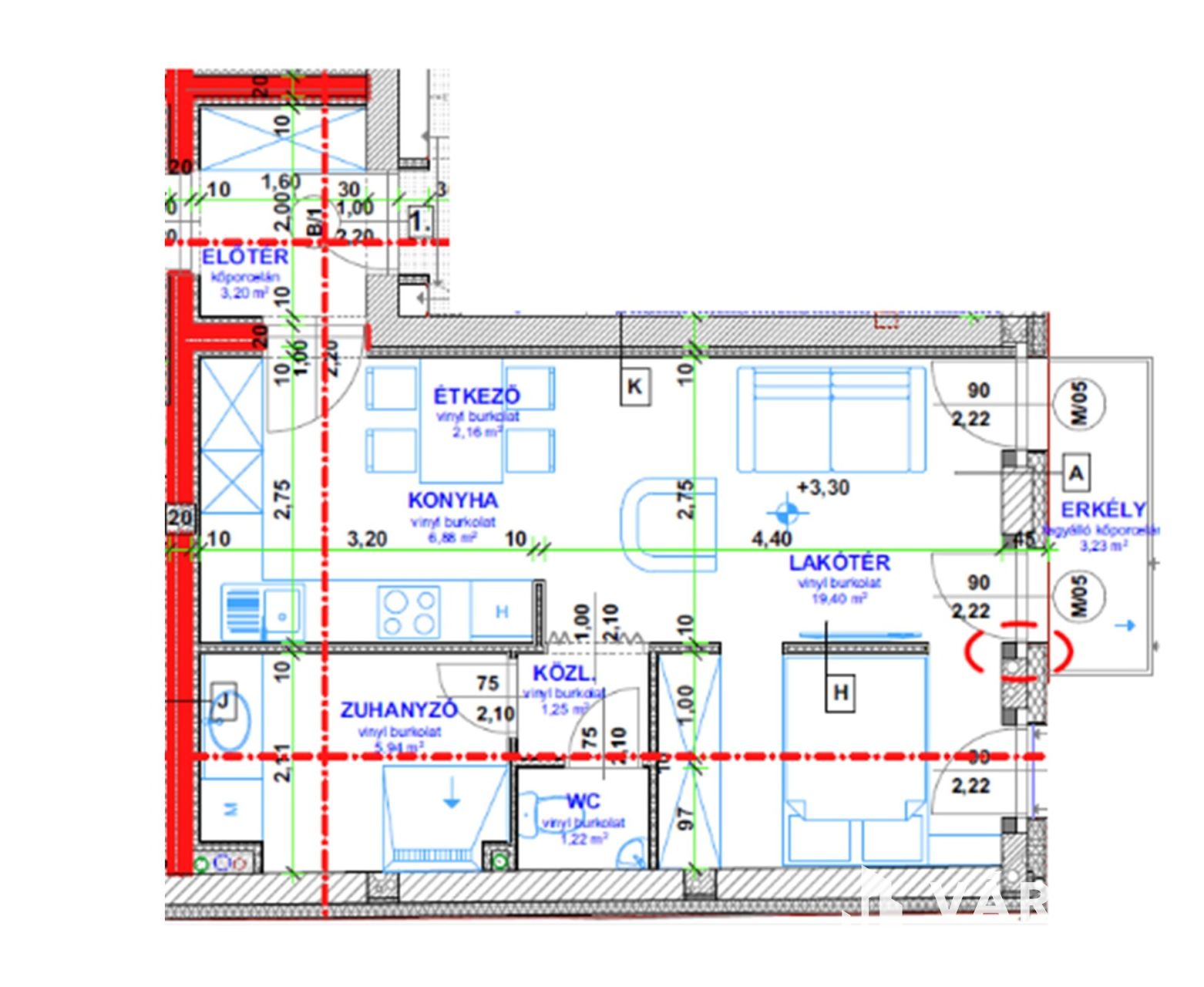 1.a Lakás 38,45 m2 +3,23 m2 (erkély)