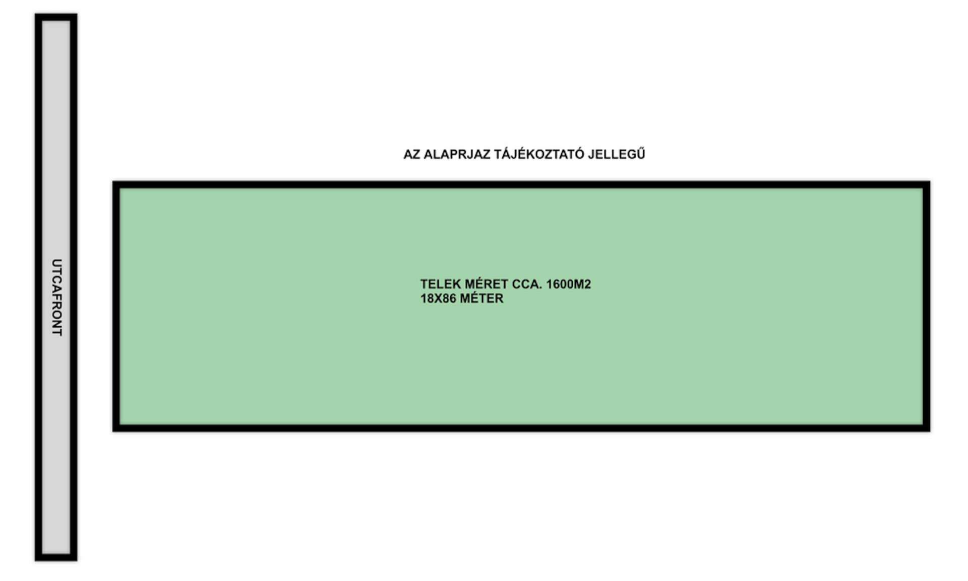 Az utcafronti telekszélesség 18 méter, hossza kb. 85 méter.