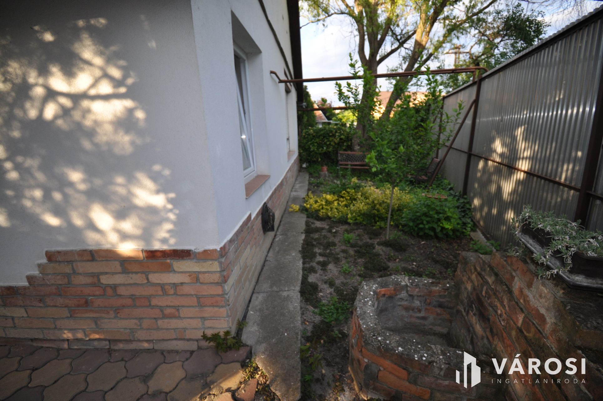A ház további előnyei közé tartozik a fúrt kút, amely gazdaságos megoldást nyújt az öntözéshez, valamint a melléképület, amely számos lehetőséget kínál, legyen szó tárolásról vagy műhely kialakításáról.