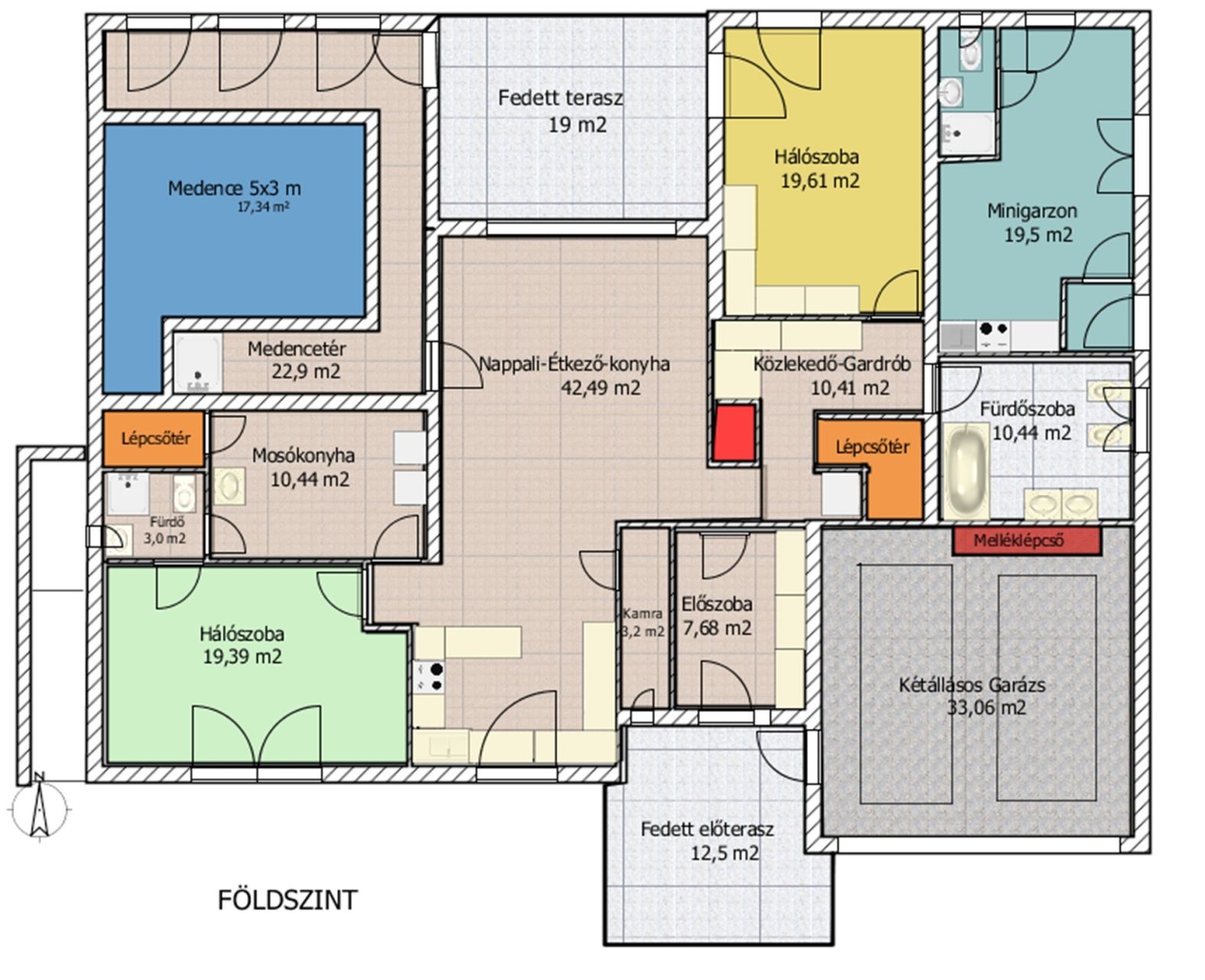 a külön bejáratú minigarzon (ideális vendégeknek vagy idős családtagnak önálló lakrészként)