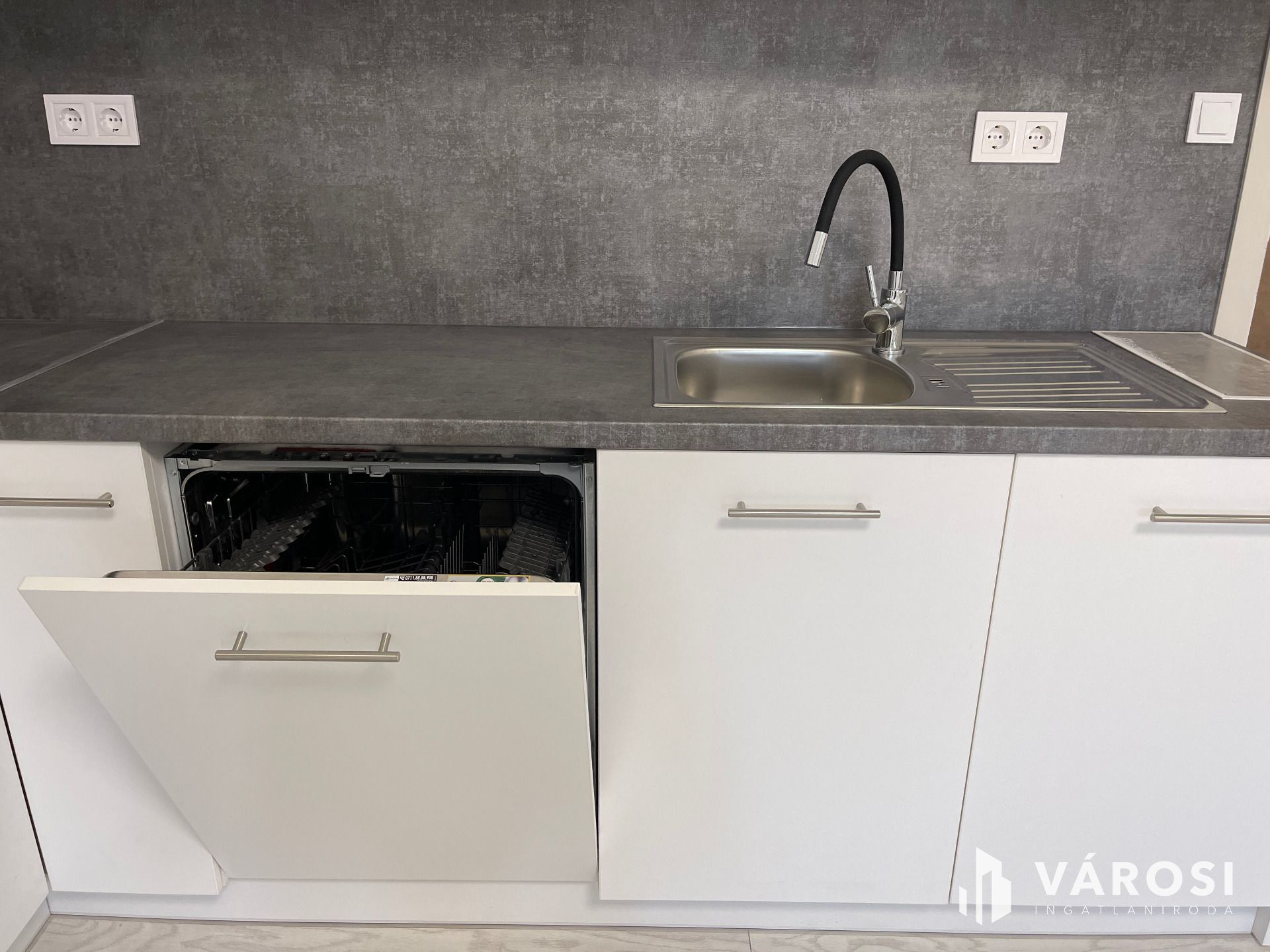 A komfortos, modern 77 m2-es lakás tágas nappali-konyhával rendelkezik, ahol már beépítésre került az egész konyhasarok az elektromos tűzhellyel, főzőlappal, mosogatógéppel felszerelve. A két hálószoba külön és egymásból is nyílik, a fürdőszobában tusoló és WC találhat. Az egyik szoba még egy kis kuckót is rejt, ami lehet egy pakoló hely vagy gyerekeknek játszószoba.