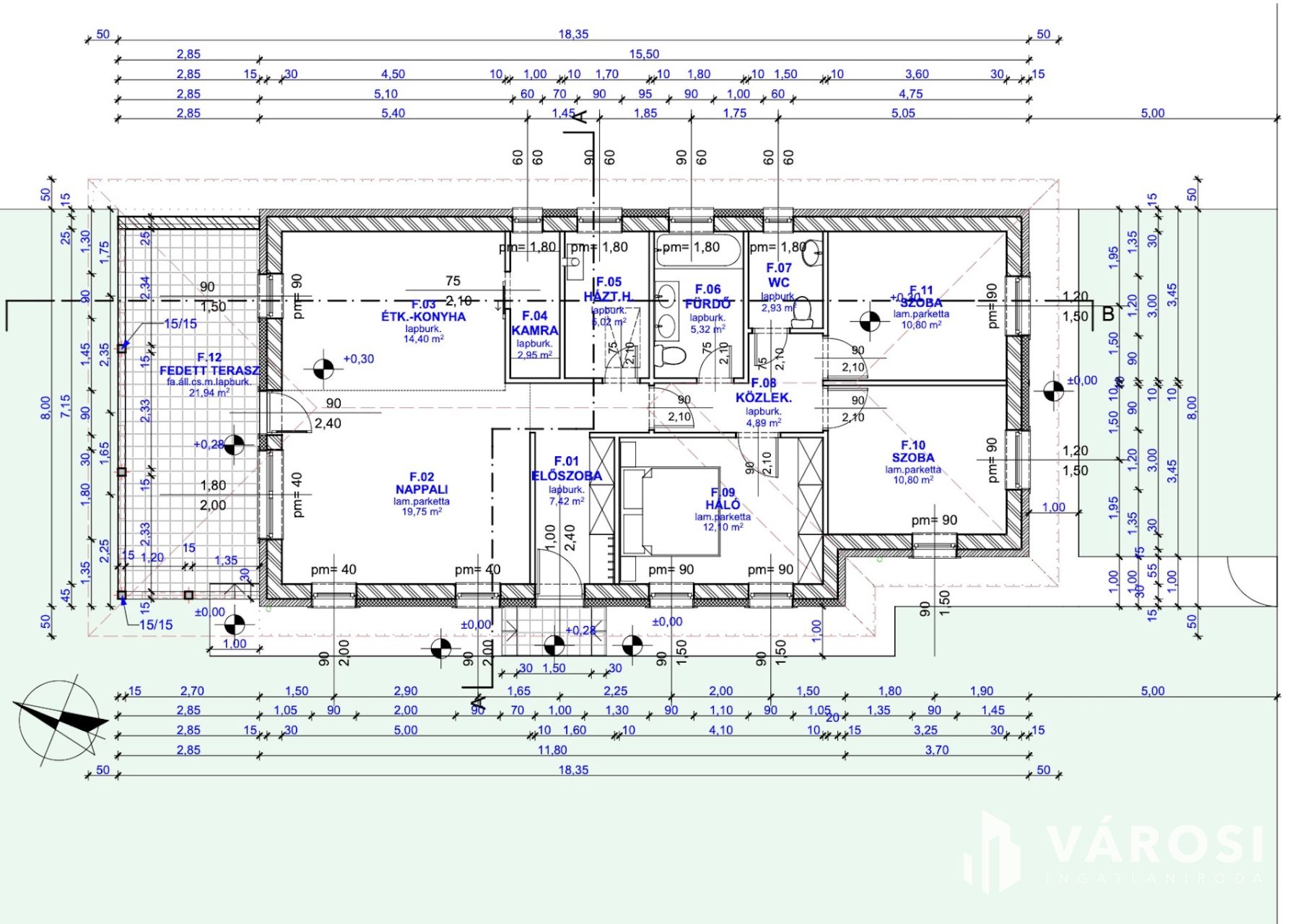 - Tetőszerkezet, födém: (záró) koszorúba kötött szeglemezes tetőszerkezet gomba, rovar és tűzkár ellen kezelve. Függesztett álmennyezettel, alsó burkolata glettelt 1 rtg gipszkarton burkolattal. Eresz lazúros gyalult lambériával burkolva.