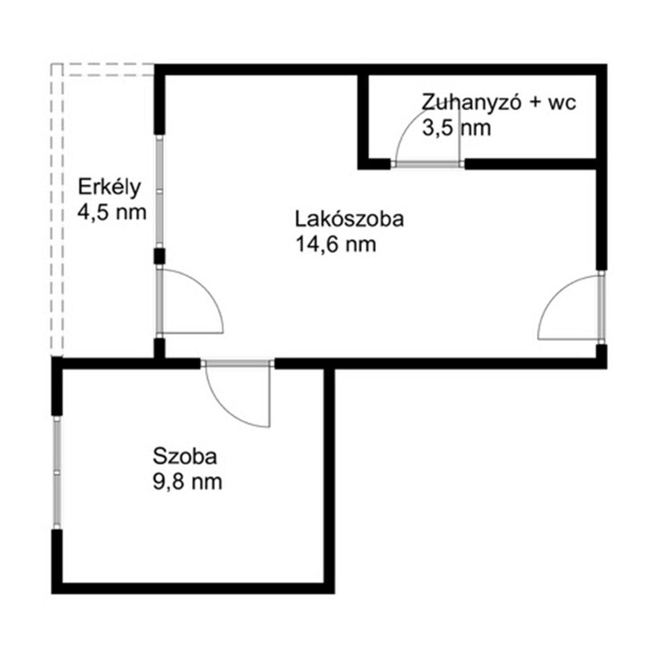 Ez a lakás a társasház első emeletén található (A66), 30,2 nm hasznos alapterülettel rendelkezik. A lakótér helyiségei: lakószoba, wc, zuhanyzó, szoba, erkély.